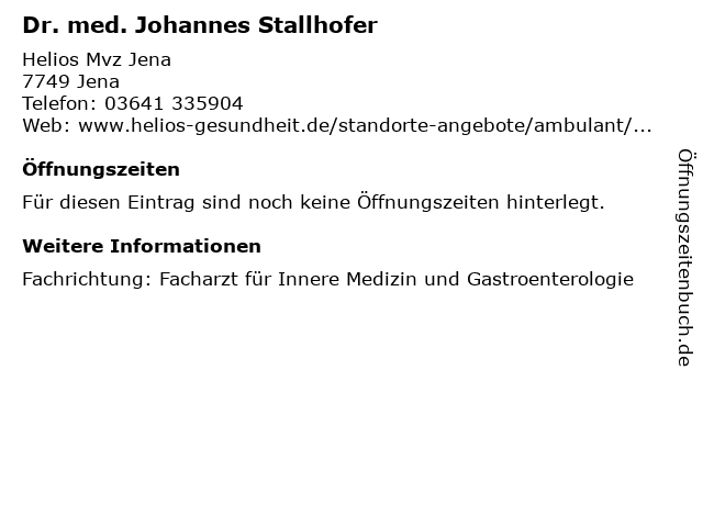 Dr. med. Johannes Stallhofer in Jena | Telefonnummer, Öffnungszeiten und Adresse