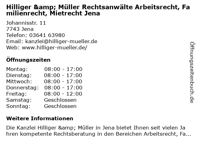 Branchen & Suchbegriffe zu Hilliger & Müller Rechtsanwälte Arbeitsrecht, Familienrecht, Mietrecht Jena:arbeitsrecht, familienrecht, hilliger, mietrecht, müller, rechtsanwälte |