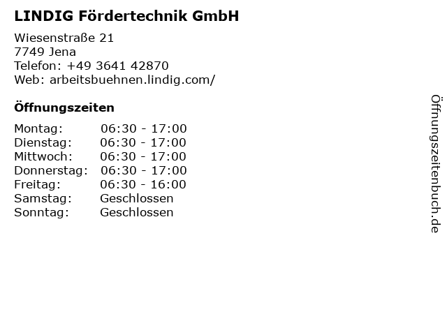 | Öffnungszeiten LINDIG Fördertechnik GmbH in Jena anzeigen | |