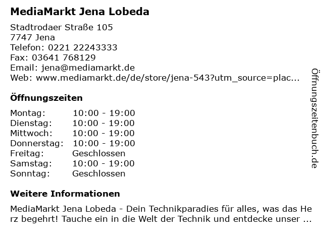 Öffnungszeiten MediaMarkt Jena Lobeda
