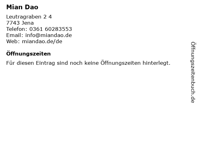 | Öffnungszeiten Mian Dao in Jena anzeigen | |