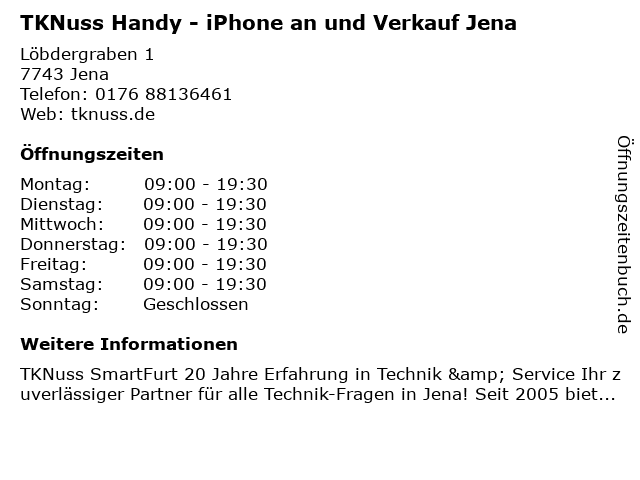 Branchen & Suchbegriffe zu TKNuss Handy - iPhone an und Verkauf Jena:an, anbieter für telekommunikationsgeräte, handy, iphone, mobiltelefongeschäft, reparaturgeschäft für elektrogeräte, second-hand-laden, tknuss, verkauf |
