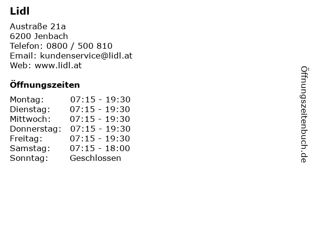 | Öffnungszeiten Lidl in Jenbach anzeigen | |