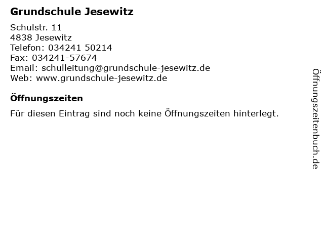 | Öffnungszeiten Grundschule Jesewitz in Jesewitz anzeigen | |