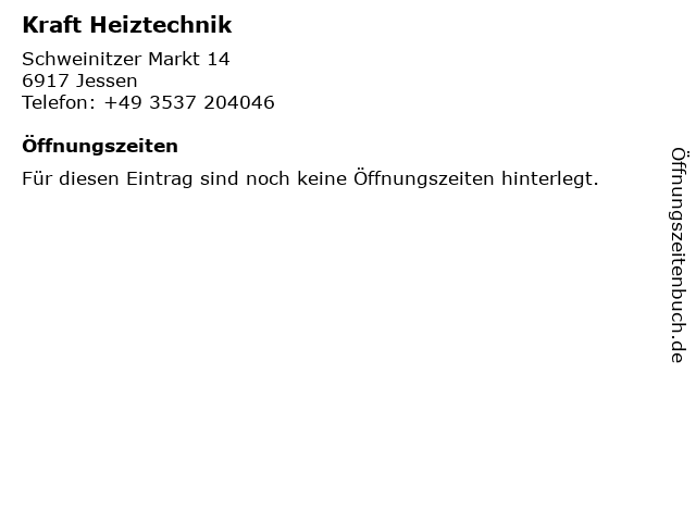 | Öffnungszeiten Kraft Heiztechnik in Jessen anzeigen | |