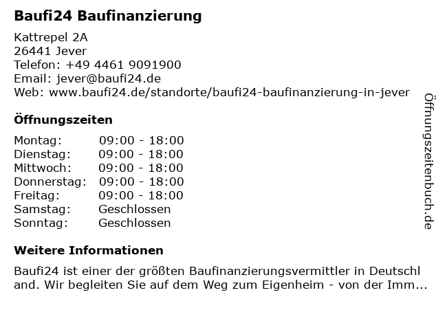 | Öffnungszeiten Baufi24 Baufinanzierung in Jever anzeigen | |