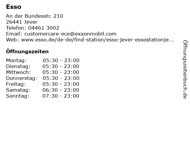 | Öffnungszeiten Esso in Jever anzeigen | |
