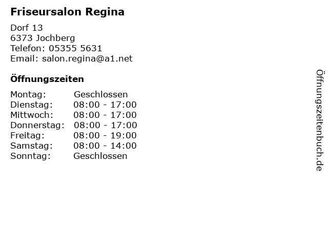| Öffnungszeiten Friseursalon Regina in Jochberg anzeigen | |