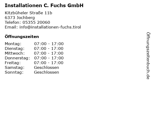 | Öffnungszeiten Installationen C. Fuchs GmbH in Jochberg anzeigen | |
