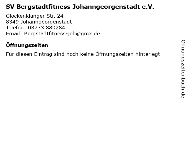 | SV Bergstadtfitness Johanngeorgenstadt e.V. anrufen | |