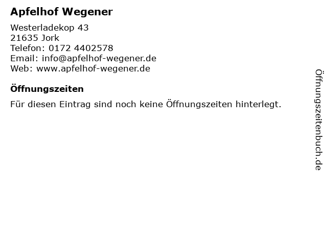 | Öffnungszeiten Apfelhof Wegener in Jork anzeigen | |
