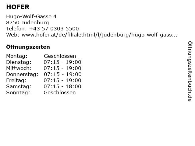 | Öffnungszeiten HOFER in Judenburg anzeigen | |