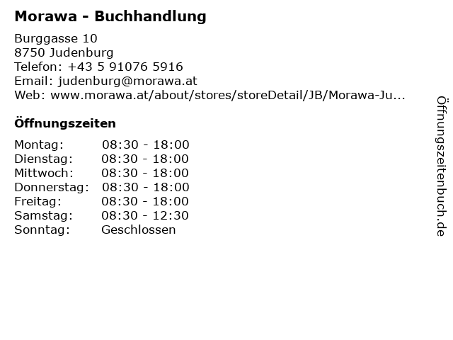 | Öffnungszeiten Morawa - Buchhandlung in Judenburg anzeigen | |