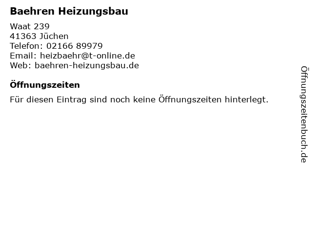 | Öffnungszeiten Baehren Heizungsbau in Jüchen anzeigen | |