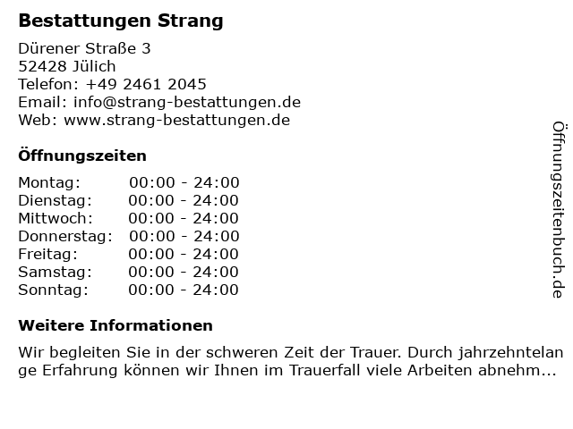 | Öffnungszeiten Bestattungen Strang in Jülich anzeigen | |
