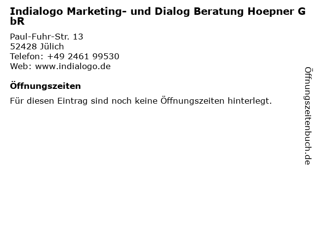 | Indialogo Marketing- und Dialog Beratung Hoepner GbR anrufen | |