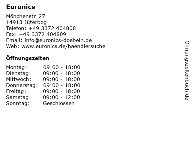 | Öffnungszeiten Euronics in Jüterbog anzeigen | |