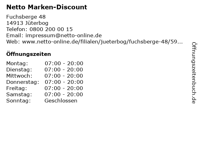 | Öffnungszeiten Netto Marken-Discount in Jüterbog anzeigen | |