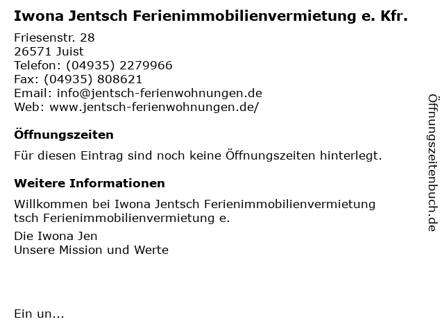 | Iwona Jentsch Ferienimmobilienvermietung e. Kfr. anrufen | |