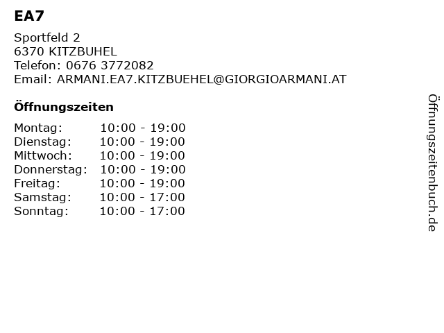 | Öffnungszeiten EA7 in KITZBUHEL anzeigen | |