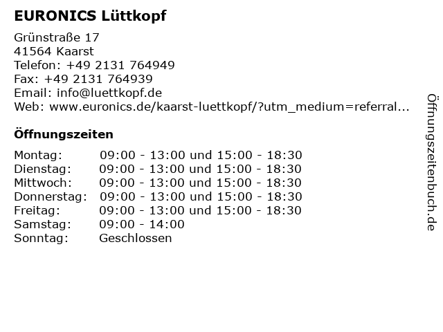 | Öffnungszeiten EURONICS Lüttkopf in Kaarst anzeigen | |
