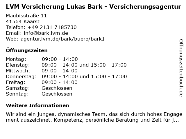 1 LVM-Versicherungsagentur Hermann-Josef Tenberken (Bürozeiten) (Entfernung: 4,36 km) Meerbuscher Str. 71, 40670 Meerbusch 6 |