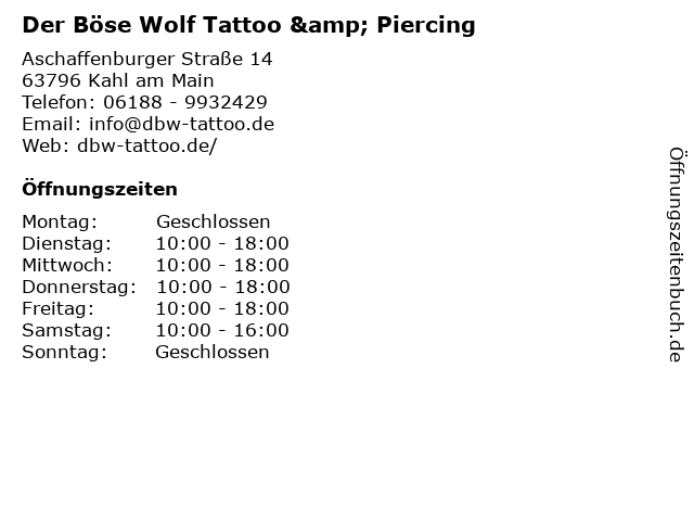 Branchen & Suchbegriffe zu Der Böse Wolf Tattoo & Piercing:böse, dienste, ink, piercing, tattoo, tattoostudio, wolf |