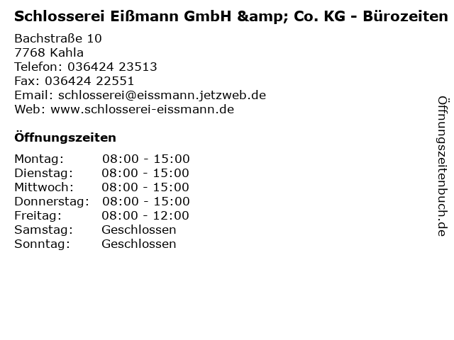 Branchen & Suchbegriffe zu Schlosserei Eißmann GmbH & Co. KG - Bürozeiten:bürozeiten, co, drehereien, eißmann, schlosserei, schlossereien, schweißereien |