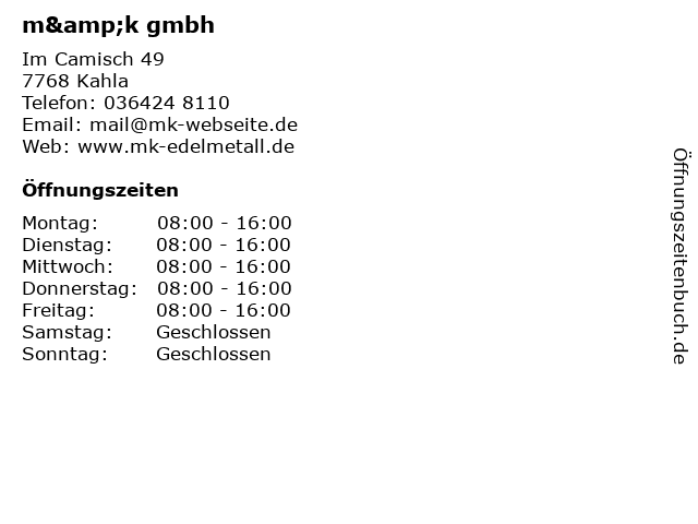 | Öffnungszeiten m&k gmbh in Kahla anzeigen | |