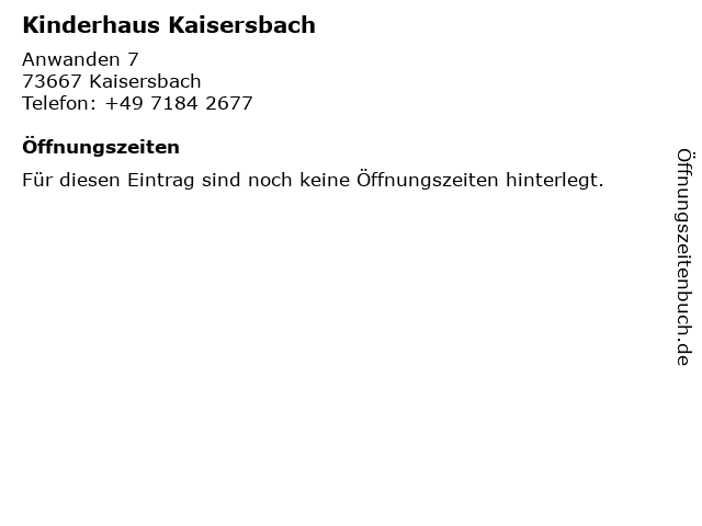 | Telefonnummer Kinderhaus Kaisersbach in Kaisersbach (+49 7184 2677) anrufen | |
