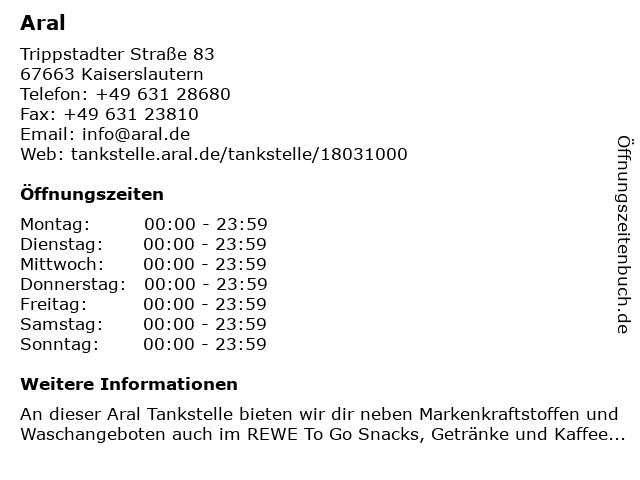 | Öffnungszeiten Aral in Kaiserslautern anzeigen | |