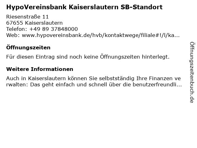 | HypoVereinsbank Kaiserslautern SB-Standort anrufen | |