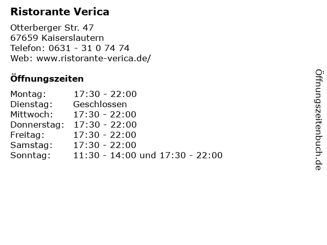 | Öffnungszeiten Ristorante Verica in Kaiserslautern anzeigen | |
