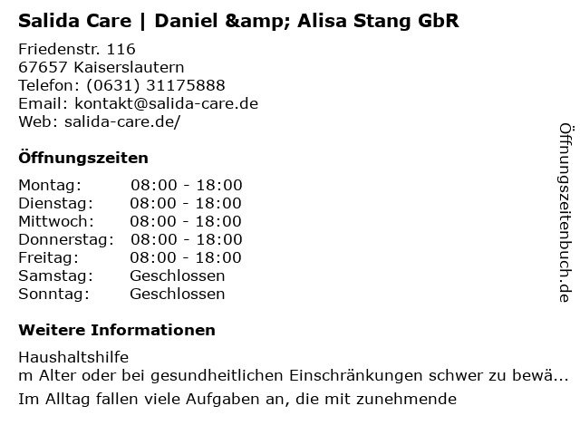 Branchen & Suchbegriffe zu Salida Care | Daniel & Alisa Stang GbR:alisa, alltagsbegleiter für senioren, alltagsbegleitung, alltagshilfen, alltagshilfen für senioren, altenpflege, betreuung bei altersdemenz, betreuung im alltag, care, daniel, gbr, hauswirtschaft, pflege, salida, stang |