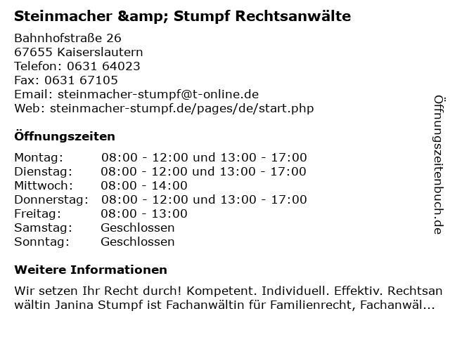 Branchen & Suchbegriffe zu Steinmacher & Stumpf Rechtsanwälte:rechtsanwälte, steinmacher, stumpf |