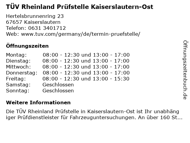 Branchen & Suchbegriffe zu TÜV Rheinland Prüfstelle Kaiserslautern-Ost:ost, prüfstelle, rheinland, tüv |