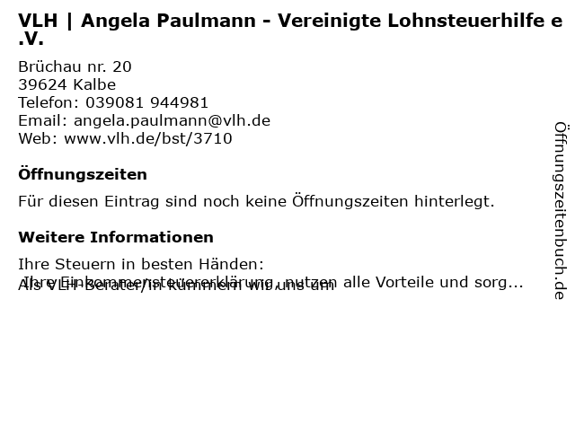 | VLH | Angela Paulmann - Vereinigte Lohnsteuerhilfe e.V. anrufen | |