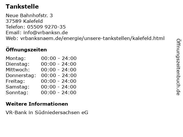 | Öffnungszeiten Tankstelle in Kalefeld anzeigen | |