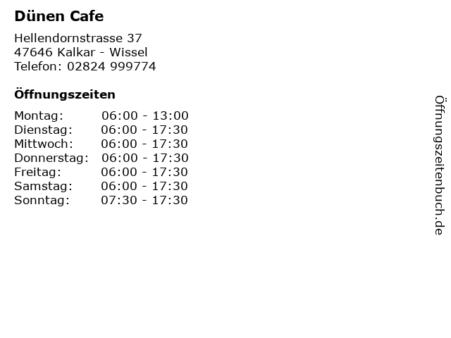 | Öffnungszeiten Dünen Cafe in Kalkar - Wissel anzeigen | |