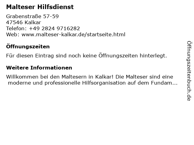 | Öffnungszeiten Malteser Hilfsdienst in Kalkar anzeigen | |