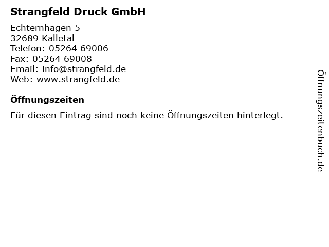 | Öffnungszeiten Strangfeld Druck GmbH in Kalletal anzeigen | |