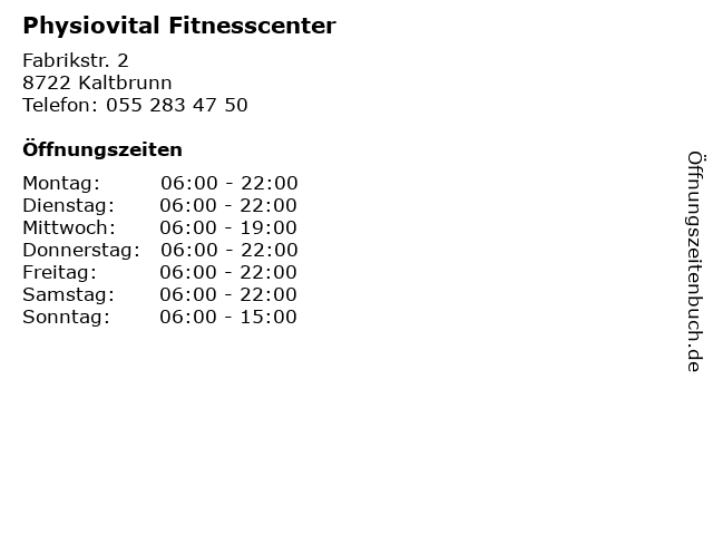 | Öffnungszeiten Physiovital Fitnesscenter in Kaltbrunn anzeigen | |