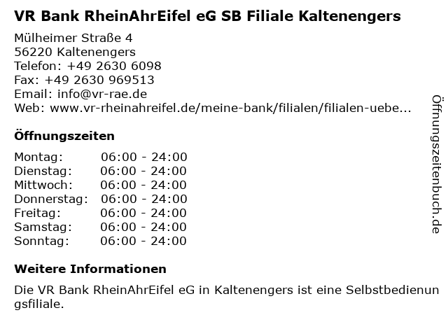 1 Volksbank RheinAhrEifel eG - (Geldautomat Filiale) (Entfernung: 0,00 km) Mülheimer Straße 4, 56220 Kaltenengers 4 Volksbank RheinAhrEifel eG - (Geldautomat Filiale) (Entfernung: 1,56 km) Raiffeisenstraße 9, 56220 Urmitz 6 |