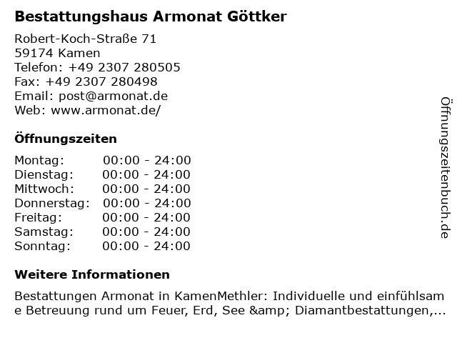 1 Göttker Bestattungshaus Inhaber Frank Automat (Entfernung: 0,00 km) Robert-Koch-Straße 71, 59174 Kamen 6 |