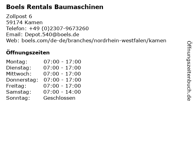 | Öffnungszeiten Boels Rentals Baumaschinen in Kamen anzeigen | |