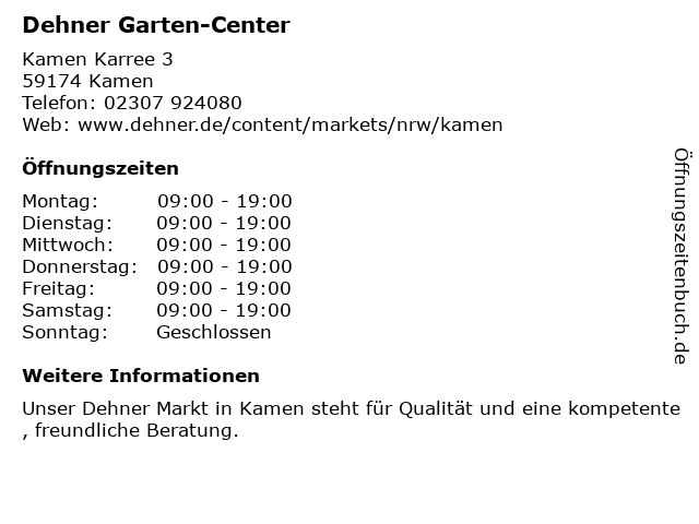 Dehner Garten-Center in Kamen | Telefonnummer, Öffnungszeiten und Adresse