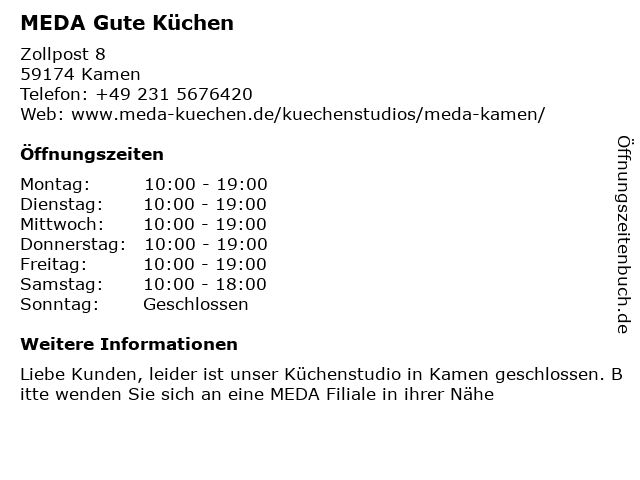 | Öffnungszeiten MEDA Gute Küchen in Kamen anzeigen | |