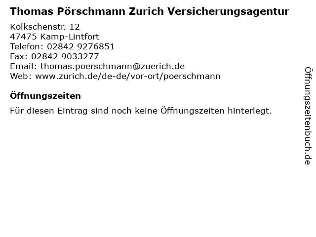 | Thomas Pörschmann Zurich Versicherungsagentur anrufen | |