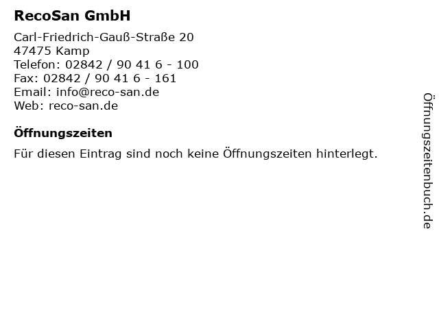 | Öffnungszeiten RecoSan GmbH in Kamp anzeigen | |