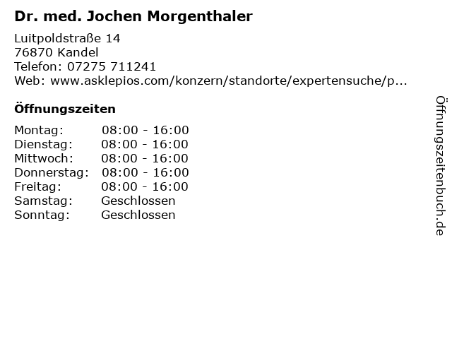 Öffnungszeiten Dr. med. Jochen Morgenthaler in Kandel anzeigen | |